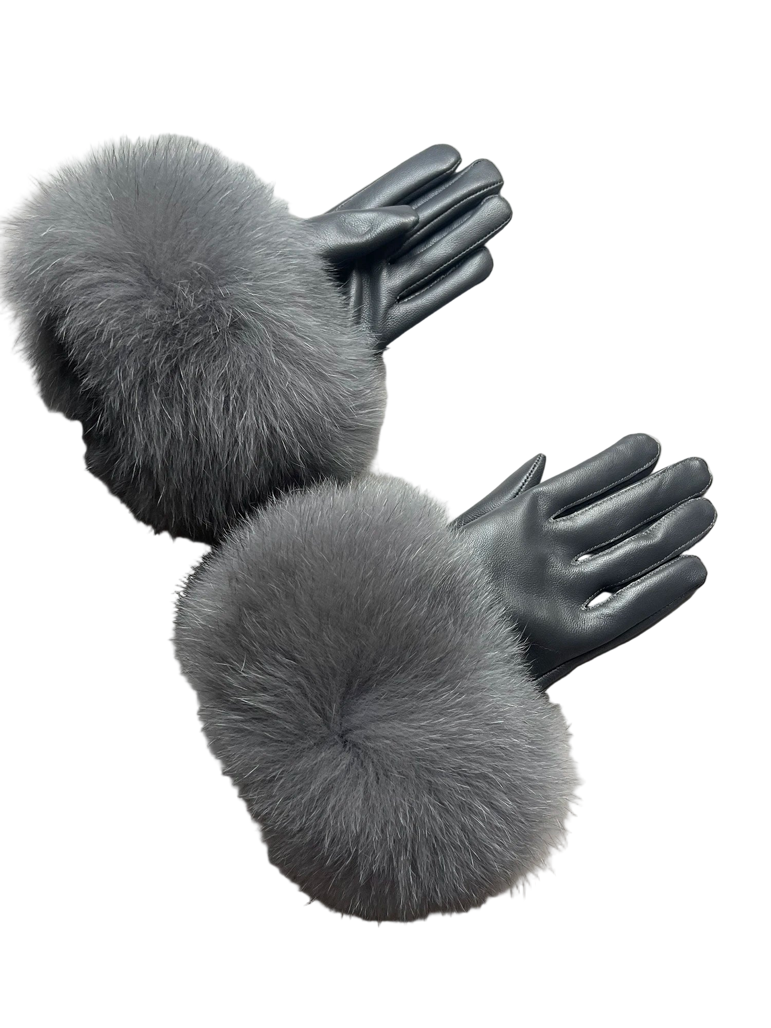 Elegant winter gloves crafted in soft sheepskin with oversized fox-fur cuffs. A timeless, polished essential that adds quiet luxury to any coat. Warm, refined, and effortlessly chic.
